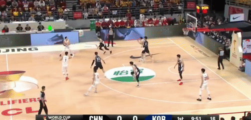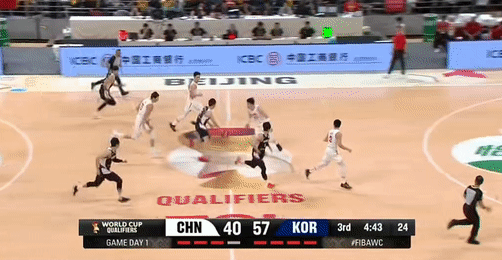 第三节,第三节结束中国男篮52-61落后韩国男篮