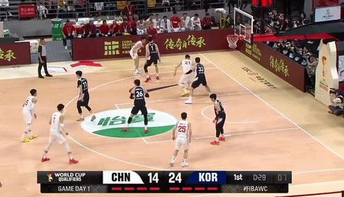 第一节中国男篮廖三宁拿下6分,韩国男篮李贤重拿下12分,首节战罢中国男篮16-24落后韩国男篮